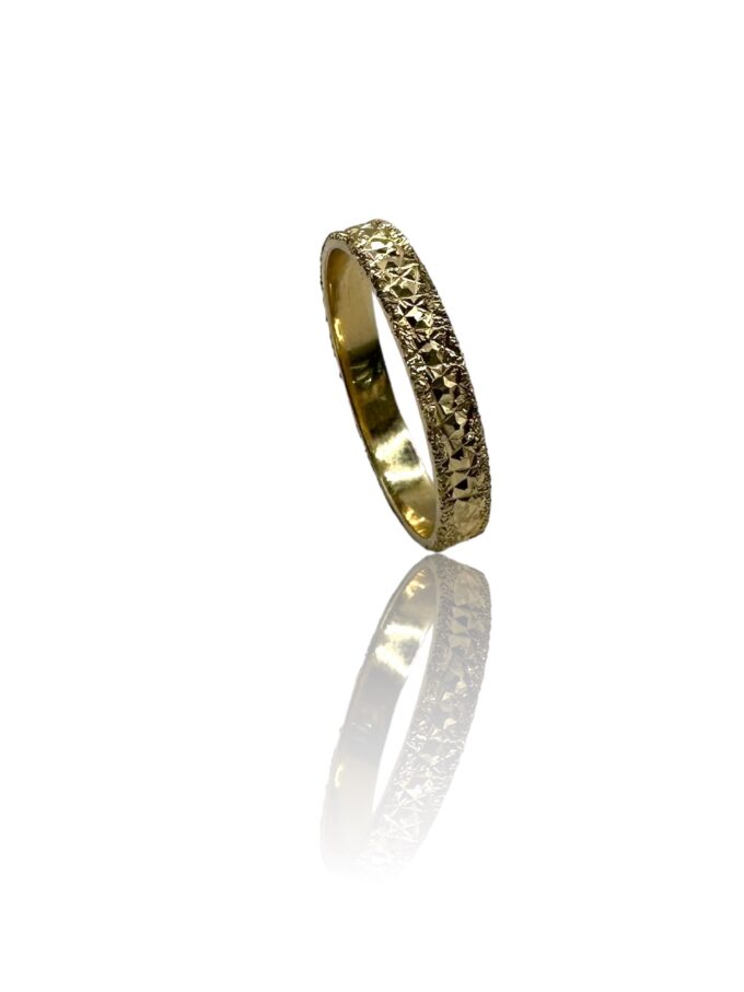 טבעת נישואין לאישה | זהב צהוב 14 קראט | עם חריטת לייזר יהלום כוכבים ונצנץ בצדדים | דגם מישל.