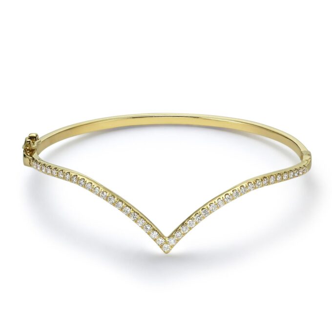 צמיד קשיחבשיבוץ יהלומים עם נוכחות מאוד גבוהה עדינה וקלאסית, בעלת מראה ייחודי ויוקרתי. חשוב שתזכרי שהצמידהזה ילווה אותך לאורך כל החיים.