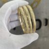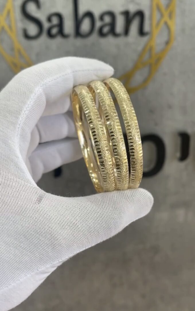 שלושה צמידים קשיחים מרוקאים | זהב צהוב | עם חיתוכי לייזר בצדדים | עם נצנץ באמצע | זהב 14k דגם רפאל